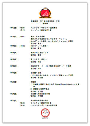Tokiossa klo 9 alkaen. Käymme kiertoajelulla